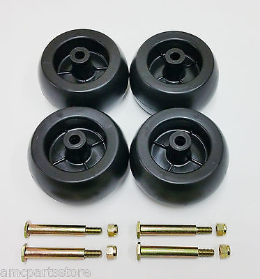 Set of 4 deck wheels with bolts & nuts compatible with Craftsman, Poulan, Husqvarna, Ariens, John Deere, and more.
