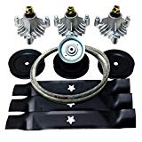 This deck kit contains 3 Spindles, 3 Blades, 3 Spindle Pulleys, 1 Idler Pulley and 1 belt